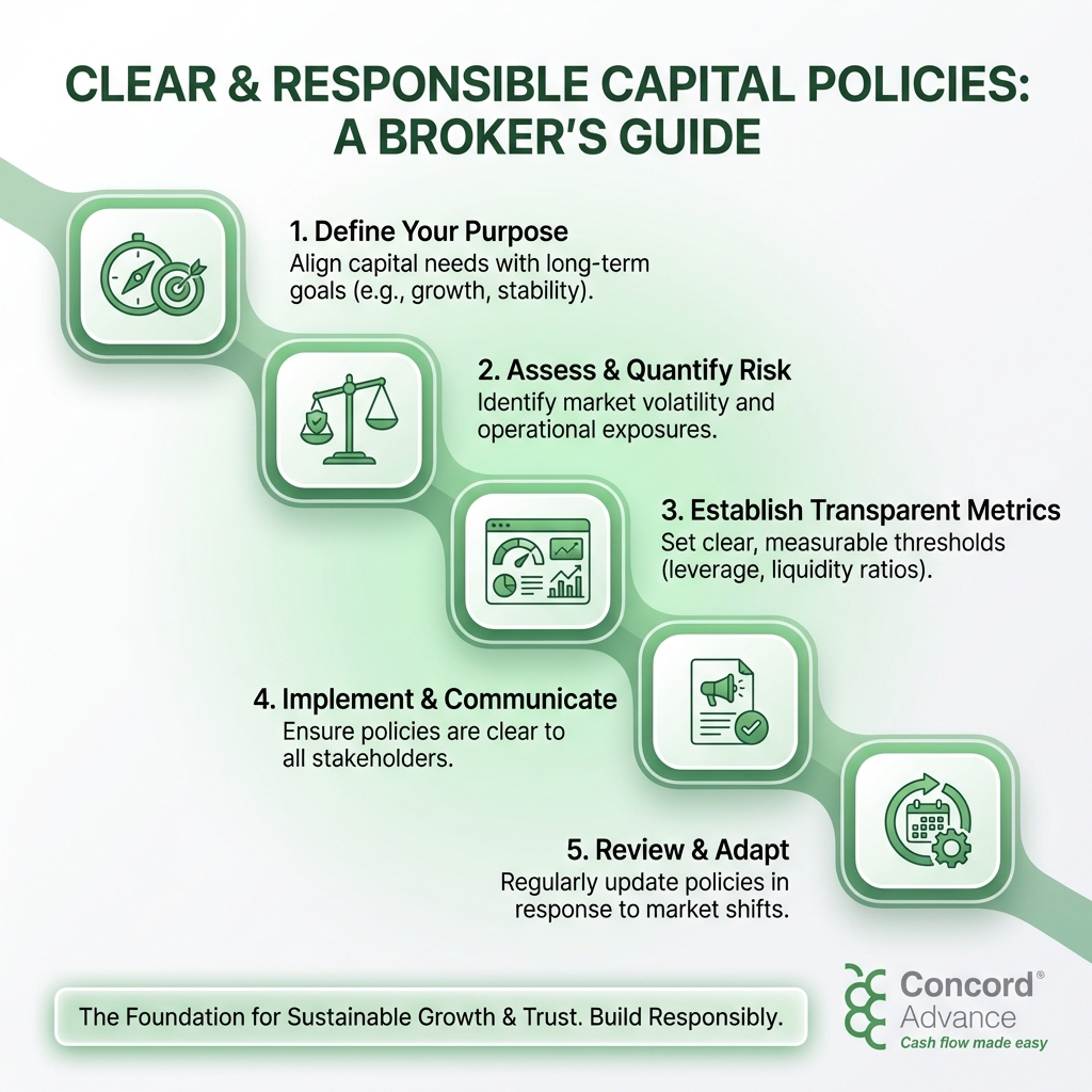 Every strong capital policy begins with a clear understanding of your brokerage’s financial position, market environment, and business goals. Here are guiding steps to help you build your policy framework.